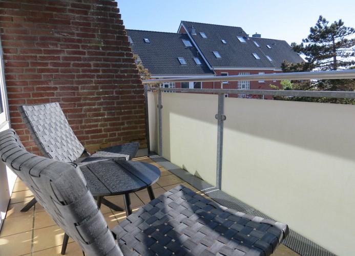Die Wohnung verfügt ausserdem noch über einen Balkon der mit Gartenmöbeln ausgestattet ist .